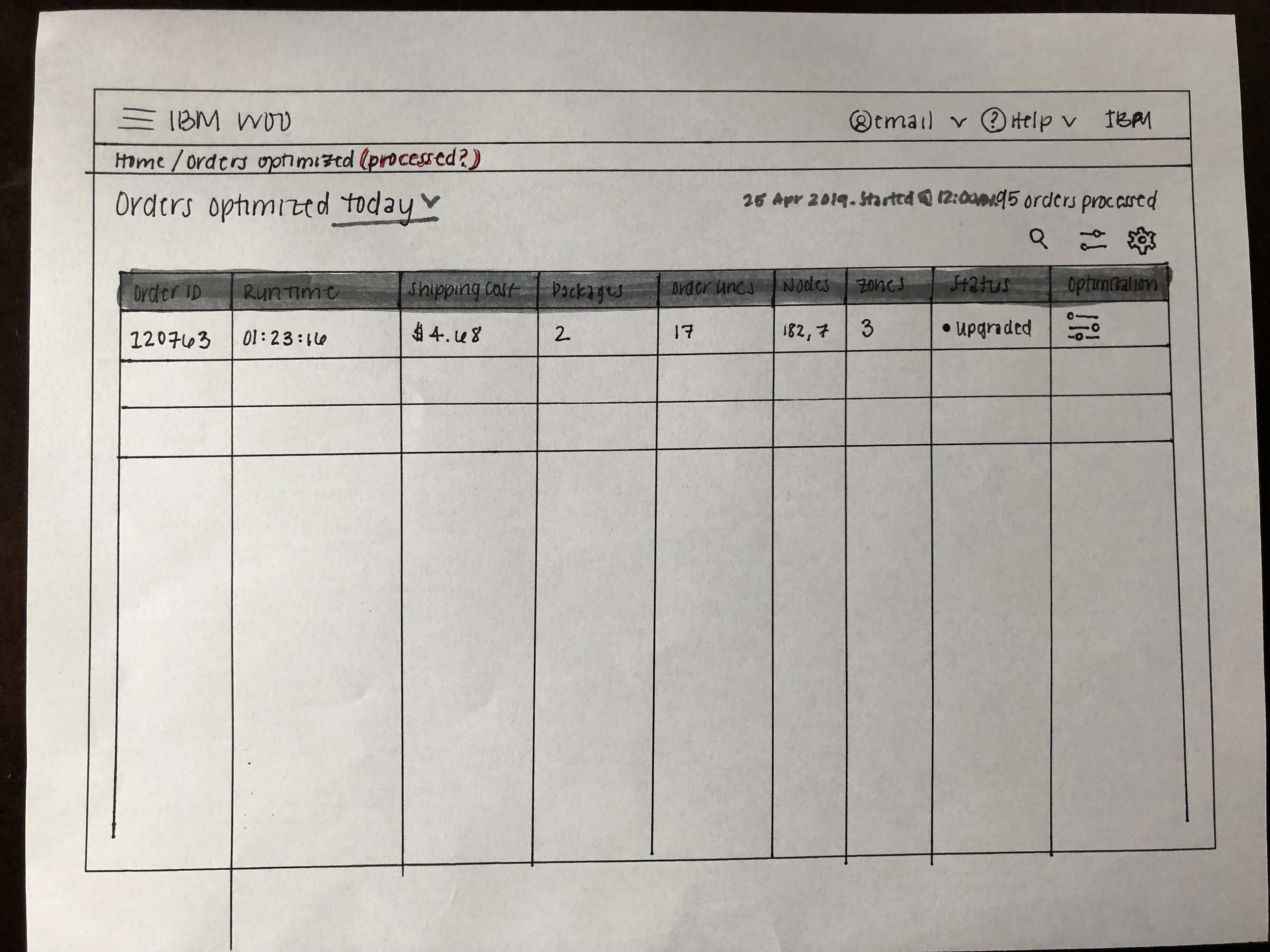 Building the optimization explainer tool was the first epic McKenzie Gutshall and I were assigned to for IBM Sterling Fulfillment Optimizer. Our first task was to review existing documentation to understand the product and user needs. We completed research sessions with customers to dig deeper into their roles, how they currently use SFO, and their needs and pain points with the product. These sessions were guided discussions led by our UX researcher, Diana Sapanaro.